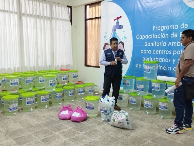 Así, una entidad pública como es la dirección regional de Vivienda, Construcción y Saneamiento está brindando atención con Kits de agua segura que contiene 50 baldes de 20 litros con tapa, grifos y agua clorificada.