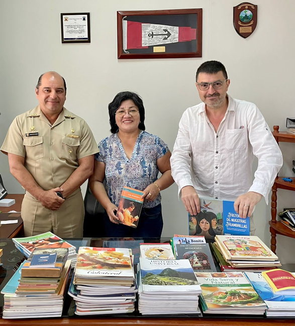 El martes 21 del presente mes, autoridades navales recibieron una importante cantidad de libros de consulta de parte de la Asociación Civil Cultural “La Cocha de los Libros”, los cuales serán distribuidos en en favor de la población estudiantil asentada en las zonas más alejadas y vulnerables de la Amazonía peruana.