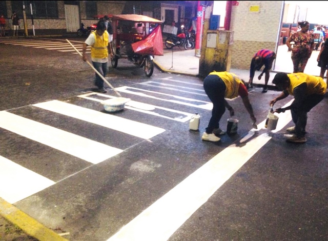 La municipalidad provincial de Maynas a través de la gerencia de Tránsito y Transporte Público por medio de la sección de Señalización y Semaforización continúa con el trabajo de pintado de las vías peatonales, como es el caso de la avenida Grau entre las calles Alfonso Ugarte y Abtao así.