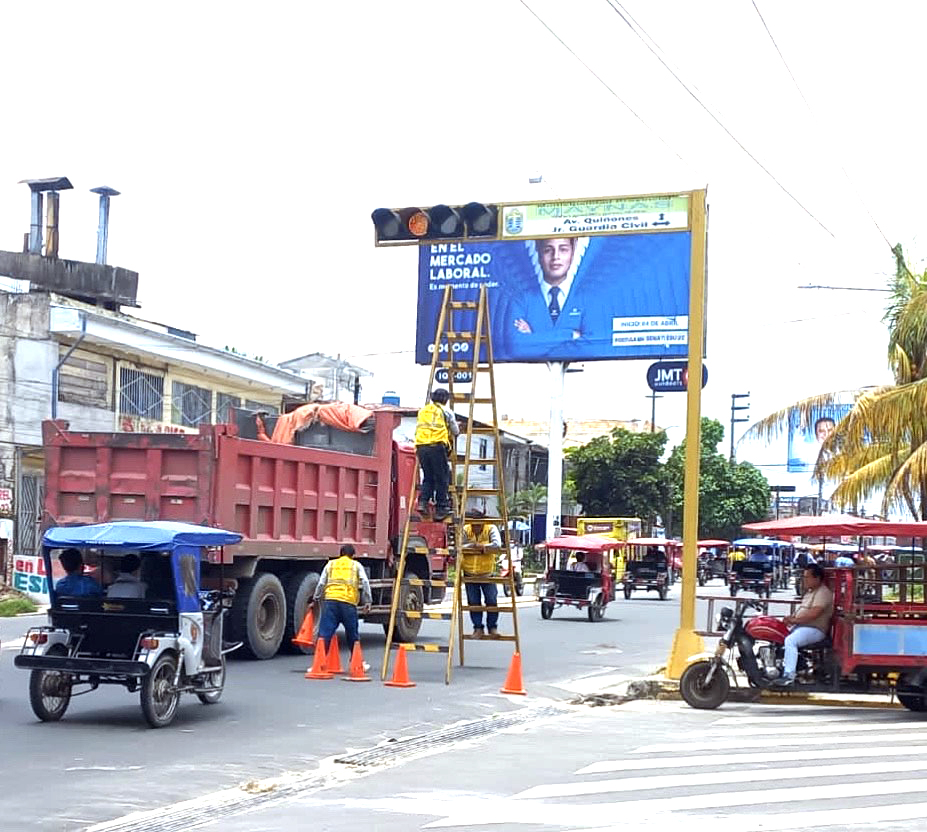 Continuando con su plan de mejoramiento del sistema semafórico en el distrito de Iquitos, la gerencia de Tránsito y Transporte Público a través de la sección de Señalización y Semaforización de la Municipalidad Provincial de Maynas continúa vigilante en el óptimo funcionamiento de los semáforos, por tal razón continúa con la reparación de los semáforos que necesitan mantenimiento y reparación ubicados en las calles R. Castilla cdra 5, Fannig / Mariscal Cáceres, Ricardo Palma / R. Castilla, Guardia Civil / Av. Quiñones, Loreto /Fizcarrald, Arequipa / Av. La Marina, Samanez Ocampo / Pablo Rossell.