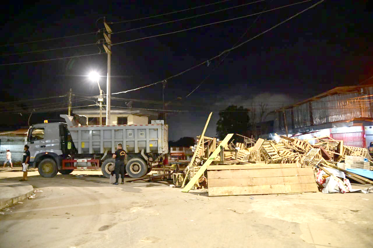 En una intensa labor, personal de la Municipalidad Provincial de Maynas realizó el retiro de jabas de madera, mesas y demás artículos que obstaculizaban el acceso y el tránsito en las calles Nanay, Celendín y Arequipa, de los alrededores del Mercado Modelo.