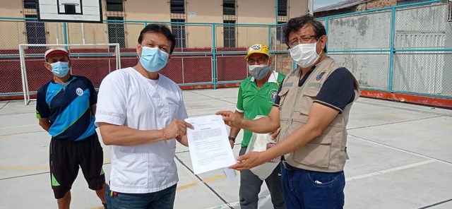 La Municipalidad Provincial de Maynas por medio de la SubGerencia Servicios Comunales, División de Educación, Cultura y Deportes hizo entrega de la Losa Deportiva Multifuncional al Presidente de la Junta Vecinal de la urbanización Acuario, señor Luís Fernando Torres Vela.