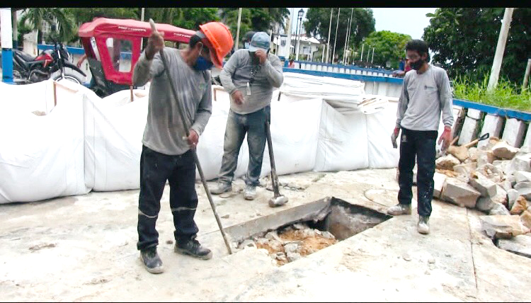 Además realizan una nueva conexión de drenaje hacia la matriz, con la finalidad de ayudar a descargar de manera rápida el agua de lluvia acumulada, cuando ésta se presente, tal como sucedió este último sábado.