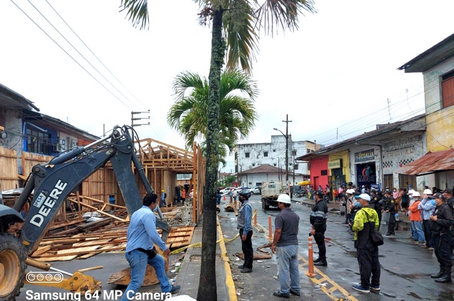 La Municipalidad Provincial de Maynas, en cumplimiento de la Ordenanza 011-2020-A-MPM y la Ley 29090- La Gerencia de Acondicionamiento Territorial comandado por el personal de la Sección de Control Urbano, junto con Division de Comercialización, Serenazgo, Servicios Generales, Tránsito, Mantenimiento de Vias perteneciente a la Gerencia de Obras e Infraestructura, Áreas Verdes y la Unidad de Servicios Especiales – PNP, realizaron un Operativo Organizado de Recuperación de la vía pública en Av. La Marina donde se encontraba el almacén de la construcción del nuevo Mercado de Productores.