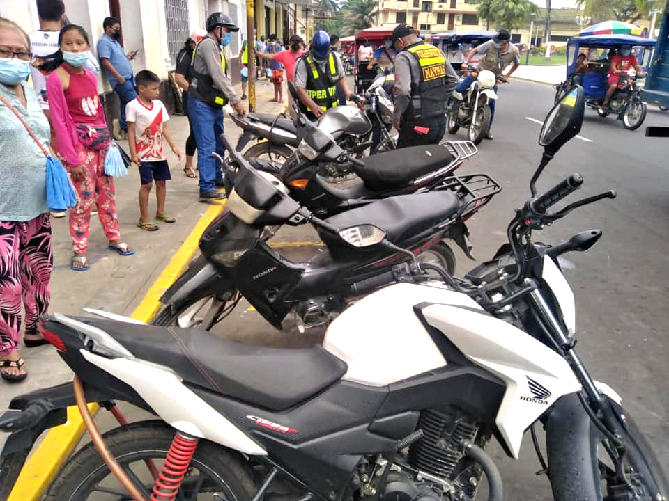 La Gerencia de Tránsito y Transporte público de la Municipalidad Provincial de Maynas, realizó un operativo de fiscalización y control a las motocicletas en las zonas rígidas en la cuadra 3 de la calle Huallaga y cuadras 1 y 2 del Jr. Putumayo (zona monumental) donde se intervino a un total de 16 unidades que fueron puestos a disposición del depósito oficial de vehículos de la municipalidad, ubicado en el local denominado como El sanjuanero en San Juan Bautista.