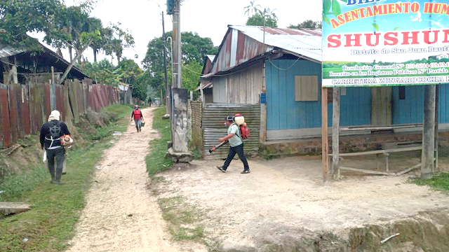 Se realizó la fumigación en días anteriores en el asentamiento humano “Las Brisas” ubicado en el kilómetro 7.5 de la carretera Iquitos- Nauta donde fueron beneficiados trescientos cincuenta familias y un total aproximado de mil setecientos cincuenta personas. También ha sido intervenido con fumigación, desbroce y limpieza las casas ubicadas cerca a la quebrada “Shushuna” donde treinta casas han sido beneficiadas y aproximadamente ciento cincuenta personas. Finalmente también han sido fumigadas ochentiocho casas del asentamiento humano “Don Mario” ubicado en la carretera a Zúngarococha beneficiando a ochocientos ochenta vivientes.
