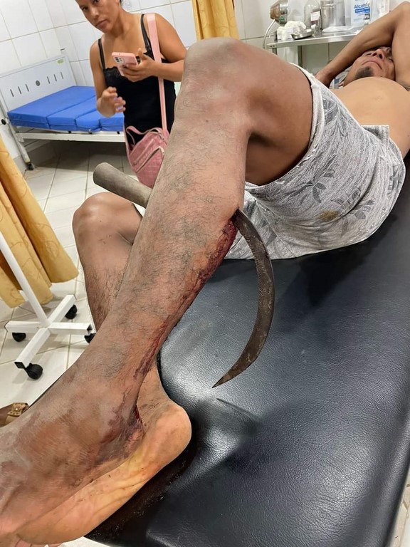 El departamento de emergencia del Hospital de Apoyo Iquitos Cesar Garayar García, asistió a un paciente que llegó herido desde la ciudad de Nauta con una hoz incrustada en su pierna.