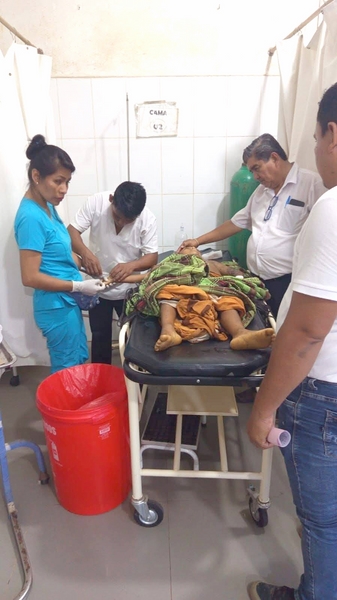 En el establecimiento de salud recibió los primeros auxilios, incluyendo la aplicación de suero antiofídico; sin embargo, su estado continuó agravándose, lo que obligó a gestionar una evacuación de emergencia hacia la ciudad de San Lorenzo.