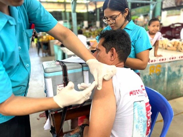 En el marco de la Jornada Nacional de Vacunación 2025, la Gerencia Regional de Salud de Loreto, desarrolló una importante actividad en el Mercado Central de Iquitos, donde vendedores, comerciantes y consumidores participaron activamente en la campaña, recibiendo diversas vacunas que protegen contra enfermedades prevenibles.