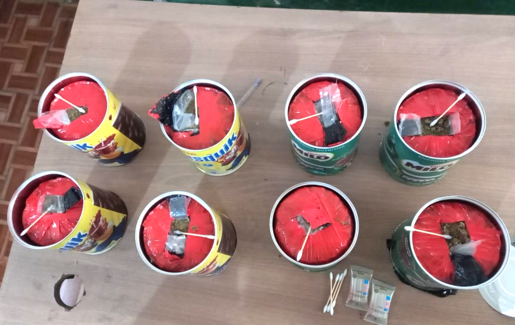La droga estaba completamente acondicionada en unas latas de Nesquik y Milo, que a toda luz parecía ser chocolate instantáneo para uso doméstico. Sin embargo, era todo lo contrario, en el interior llevaban cantidad de marihuana de alta pureza.