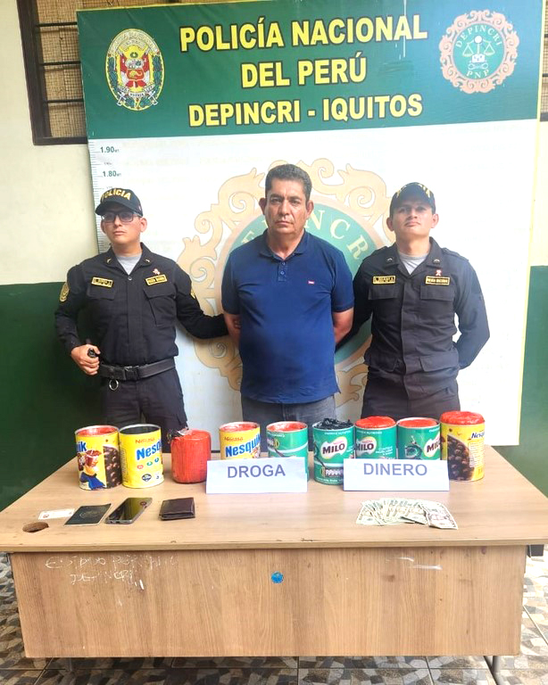 Un hombre de nacionalidad mexicana identificado como Vicente Carranza Villalobos, fue capturado por agentes del departamento de investigación criminal de Iquitos, cuando transportaba ocho latas en el interior de una caja de cartón.