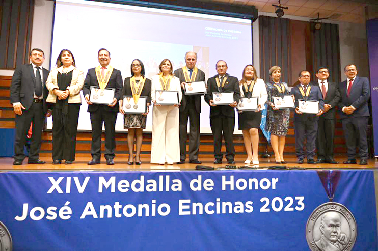El viernes 17 de noviembre se desarrolló la ceremonia de la XIV Medalla de Honor José Antonio Encinas, reconocimiento institucional de la Derrama Magisterial, que rinde homenaje a los maestros y personalidades de destacada trayectoria y aporte en el sector educativo. En este, se realizó la entrega de 8 medallas, para los ganadores de las categorías Grado Gran Oficial y Grado Gran Cruz.