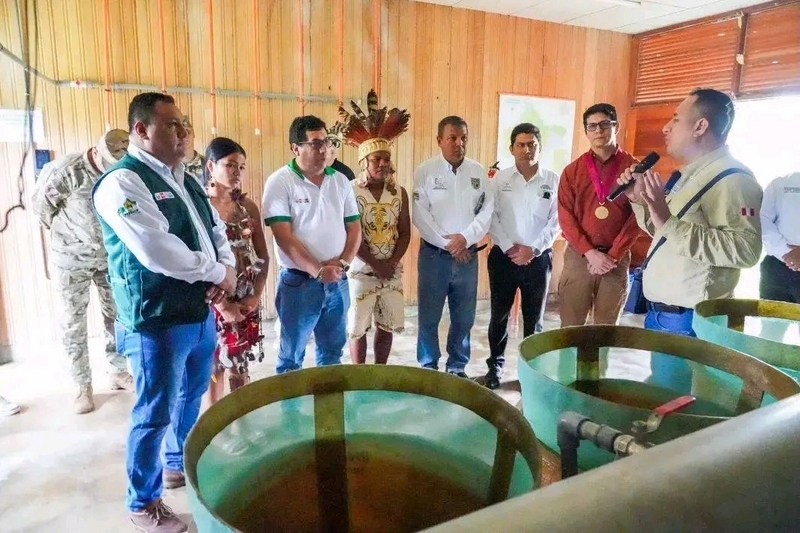 Posteriormente, en la Comunidad nativa de Cushillo Cocha, el ministro fue recibido por el APU Rony Almeyda Pereira, quien lo invitó a recorrer los módulos productivos del PEBDICP. La visita fue guiada por el Ing. Beder Aylas Camacho, encargado de la Unidad Zonal Caballo Cocha, quien expuso los avances logrados en la reproducción inducida de peces y producción de alevinos de gamitana, así como el funcionamiento del módulo de alimentos balanceados. Estas iniciativas han consolidado la integración de la piscicultura y avicultura en la agricultura familiar, contribuyendo directamente a la seguridad alimentaria y a la diversificación de ingresos de los productores locales.