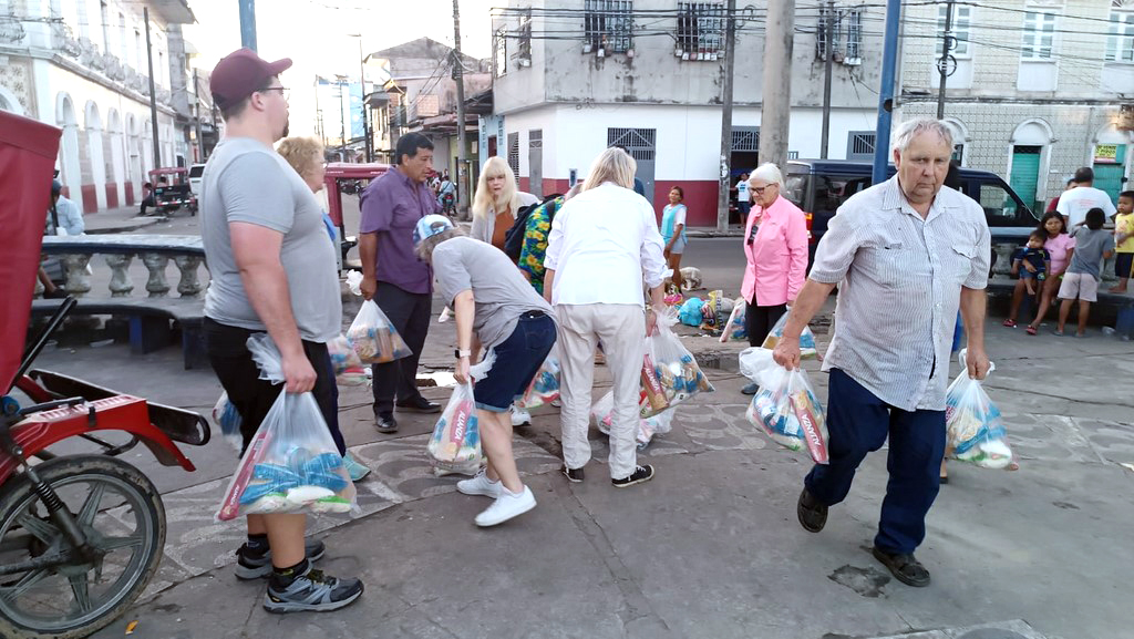 Misioneros extranjeros acompañados de los representantes de la ONG Off The Trail Mission, Juan Silva Bocanegra y Kimberly Holmes, llegaron hasta la ciudad loretana de Iquitos para llevar ayuda humanitaria a diferentes personas en zonas ribereñas y pobladores indígenas que viven en zonas periurbanas.