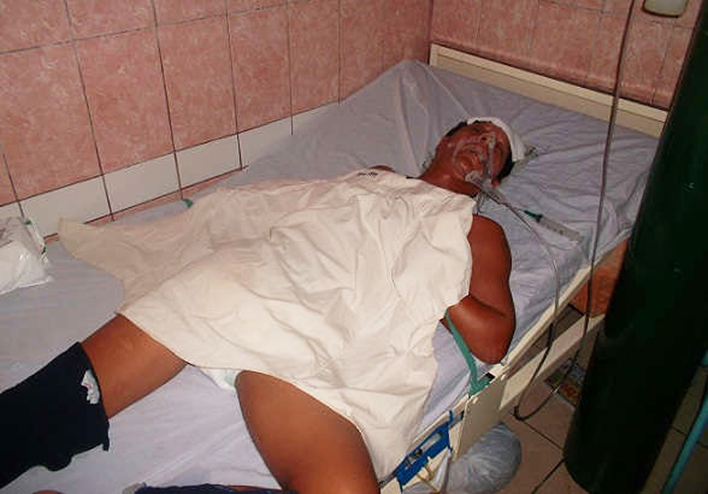 Debido a lo complicado de su estado de salud, Jorge Luis Sánchez Del Águila, de 42 años de edad, tuvo que ser evacuado de emergencia a un clínica de Tarapoto, luego que fuera golpeado salvajemente mientras trabajaba en su motocarro en la ciudad Yurimaguas.