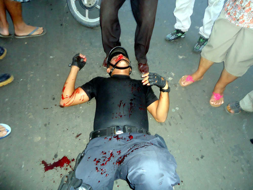 Personal de Patrullaje Integrado (Serenazgo) del Distrito de Iquitos, en las intersecciones de la calle Fanning con Dos de Mayo-Distrito de Iquitos, intervinieron un Accidente de Tránsito-Choque y Fuga, entre una motocicleta, sin placa de rodaje, marca HONDA, modelo ELITE, color rojo, donde iba como pasajero el SO3. PNP. Miguel Curto Balarezo (26), quien labora en la comisaría Iquitos, en situación de franco, y un motocarro con placa de rodaje l1-9244, conducido por Luis Fabián Olguín Luque (34), por lo que producto del impacto el sub oficial PNP y el conductor del motocarro resultaron con lesiones, mientras que el conductor del otro vehículo se dio a la fuga con rumbo desconocido, motivo por el cual las personas heridas fueron trasladas al Hospital Apoyo Iquitos, en donde fueron atendidos por el médico de turno diagnosticando para el primero de los nombrados escoriaciones múltiples, policontuso herida punzo penetrante en condilo lateral pie derecho con exposición de tendones y para el segundo de los nombrados, TEC moderado, descartar luxación de parrilla costal derecho, quedando ambos internados en la sala de emergencia de dicho nosocomio. (C. Ampuero)