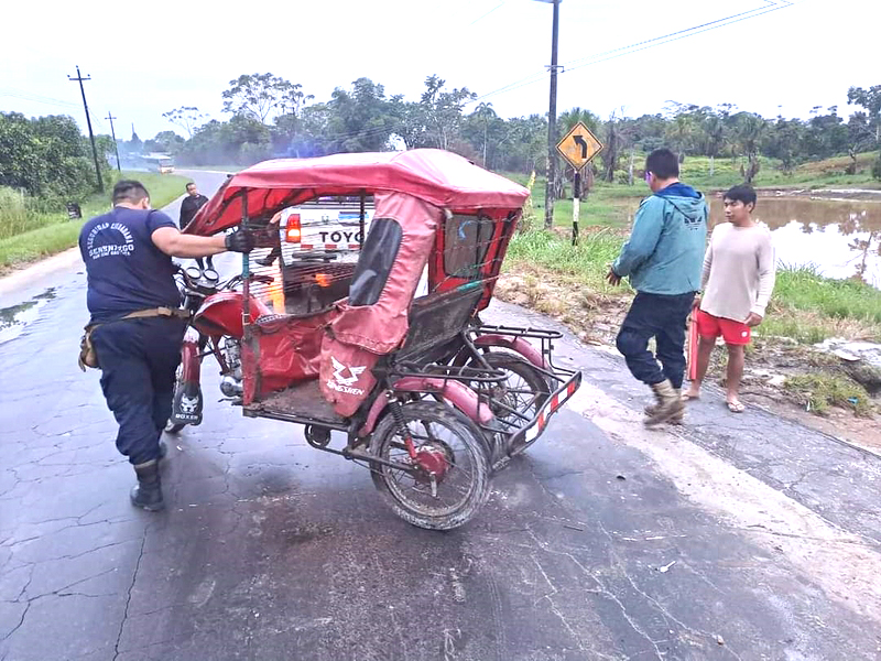 Dio varias vueltas de campana. La excesiva velocidad y la carretera mojada hizo que una mototaxi fuera protagonista de un accidente de tránsito.