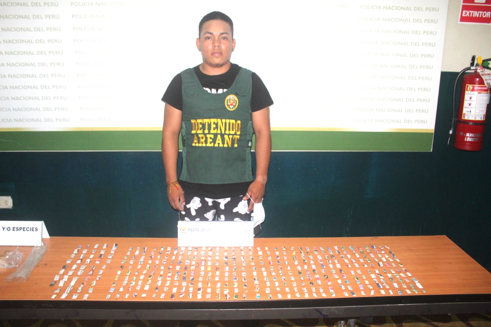 De inmediato, los agentes policiales se constituyeron al lugar procediendo a la detención de Junior Jair Marín Vela (21), el mismo que al notar la presencia policial intentó darse a la fuga, quien rápidamente fue reducido e inmovilizado encontrándosele en posesión – mano derecha una bolsa plástica transparente mediana conteniendo gran cantidad de recortes de papel periódico de los denominados “ketes” conteniendo en cada de una de ellas una sustancia parduzca pulverulenta con características propias a Pasta Básica de Cocaína, haciendo un total de 505 unidades; por lo que procedieron a la detención del sujeto capturado por encontrarse presuntamente inmerso en el delito contra la salud Publica – TID – microcomercialización, cuyas diligencias se desarrollan con participación del representante del Ministerio Público. (C. Ampuero)