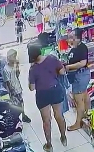 La intervenida, identificada como Mirla Deisy Souza Chávez, fue captada por cámaras de seguridad cuando, según las imágenes, sustraía ropa del local ubicado en la calle Celendín, en pleno centro de la ciudad. De acuerdo con la información preliminar, el menor que la acompañaba —quien sería su hijo— habría participado en la ejecución del hurto.