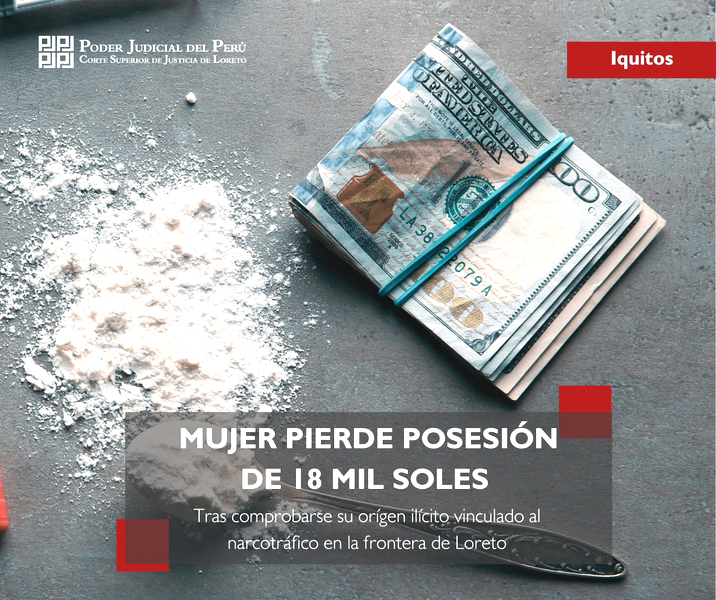 El Poder Judicial, a través del Juzgado de Extinción de Dominio de la Corte de Loreto, sentenció la transferencia de más 18 mil soles a favor del Estado peruano, por tratarse de dinero vinculado al tráfico ilícito de drogas.