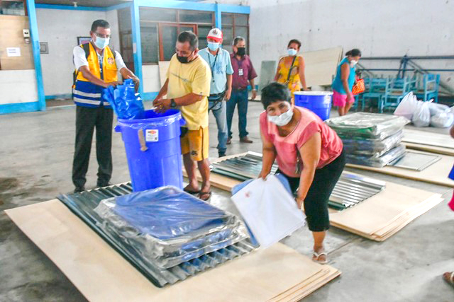 El apoyo consistió de planchas de calaminas, sábanas, mosquiteros, camas plegables, cucharas, platos, cuchillos, kit de aseo personal, bobina de plástico, espumaderas, vasos, cucharones, tazones, planchas de triplay y colchas.