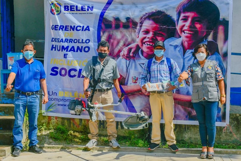 APOYO A ZONAS RURALES| La Gerencia de Desarrollo Humano e Inclusión Social de la Municipalidad Distrital de Belén, realizó la entrega de la máquina de shindaiwa además de implementos completos al agente municipal Milter Shuña Tuanama y al Tnte. Gobernador Elder Tihuay Marichi de la comunidad de Santa Rosa – Río Amazonas, con el objetivo de realizar desbroces de malezas y trabajos necesarios para el bien de la comunidad.