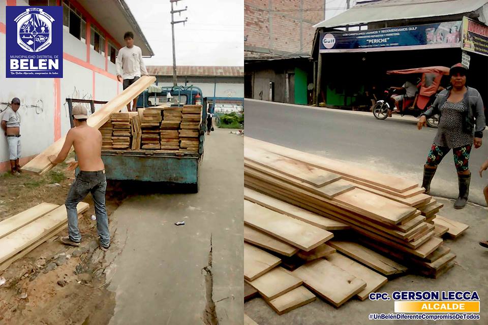 Personal de la entidad edil procedió con la entrega de tablas, vigas, caibros, pie derecho y clavos a los asentamientos humanos como 14 de Febrero, Amistad, Ampliación Cabo López, Junta Vecinal Jesús de Nazareth y Junta Vecinal Pasaje Ramírez, entre otros, los mismos que agradecieron al burgomaestre por el apoyo brindado.