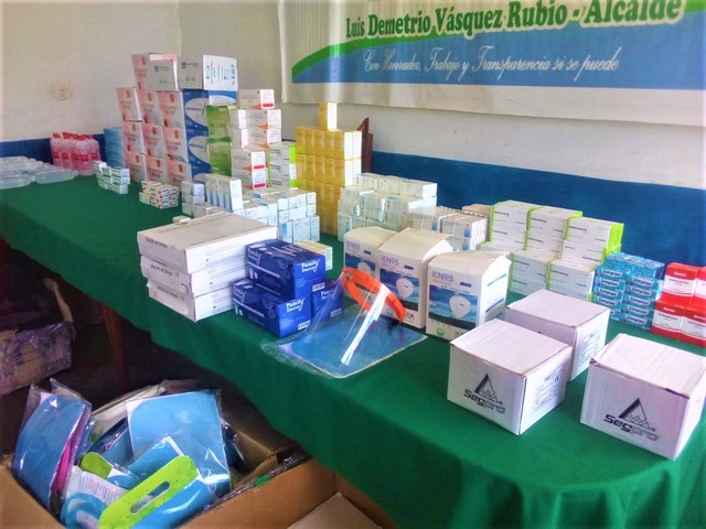 Sin bajar la guardia y vigilante ante la pandemia, el alcalde del distrito de Pebas, Luis Demetrio Vásquez Rubio, hizo entrega al médico Carlos Salas Donayre, responsable del Centro Covid-19 Pebas, un importante volumen de medicinas básicas y equipos de protección personal para la lucha contra el Covid-19.