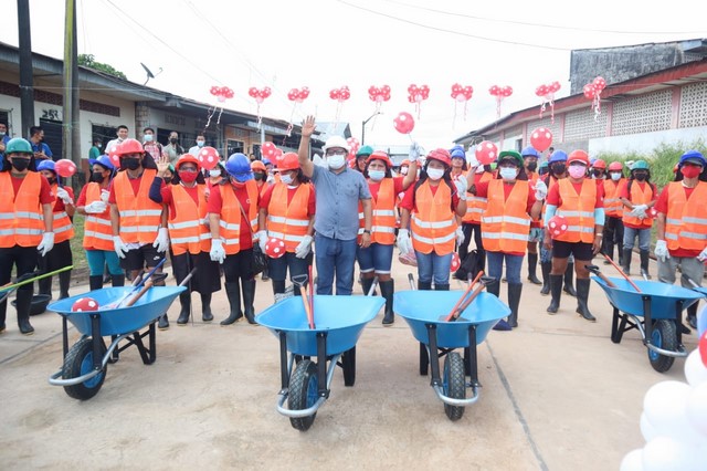 La ceremonia publica de reinicio de actividades de Trabaja Perú se realizó con presencia del alcalde de Requena, Sr. Orlando Jakers Huaymacari. En ese sentido, la mañana del lunes se inició las labores de limpieza, mantenimiento y acondicionamiento de las vías en las calles Luis Delgado (Circular, San José) – Los Ángeles (Calle Luis Delgado, Puinahua, Amazonas – Ucayali) en el AA.HH. Requena 1era Etapa Zona B.