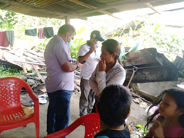 La municipalidad distrital de San Juan Bautista a través del área de Defensa Civil, acudió en apoyo de la moradora Ericka Aguinda Romayna de 26 años, quien debido a los fuertes vientos que soportó la ciudad, perdió su vivienda de material rústico que fue destruida por el ventarrón.