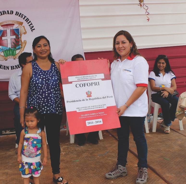 La Municipalidad Distrital de San Juan Bautista, mediante un convenio con COFOPRI, este último sábado entregó títulos de propiedad a los moradores de los asentamientos humanos.