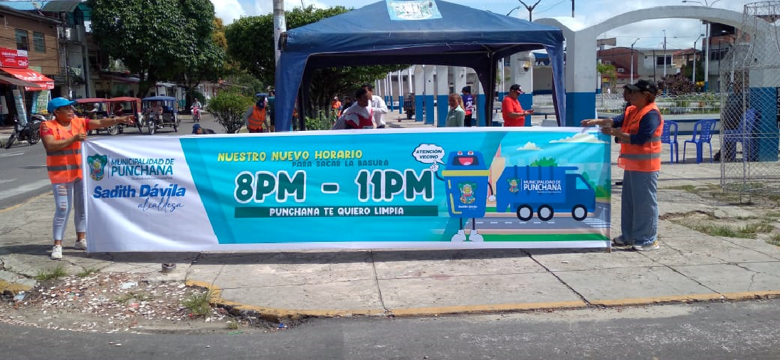 La Municipalidad Distrital de Punchana se encuentra priorizando la limpieza del distrito, es por ello que hoy tenemos un nuevo horario del recojo de la basura, 8.00 PM a 11.00 PM.
