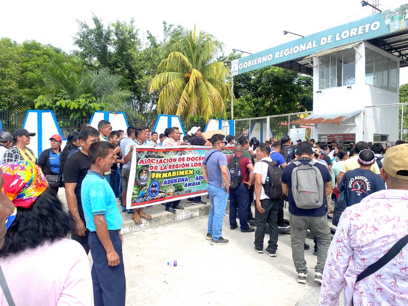 Él fue uno más de las decenas de docentes, auxiliares, administrativos, cesantes y jubilados del sector educación, que acudieron desde las 5 de la mañana hasta el frontis del gobierno regional de Loreto.