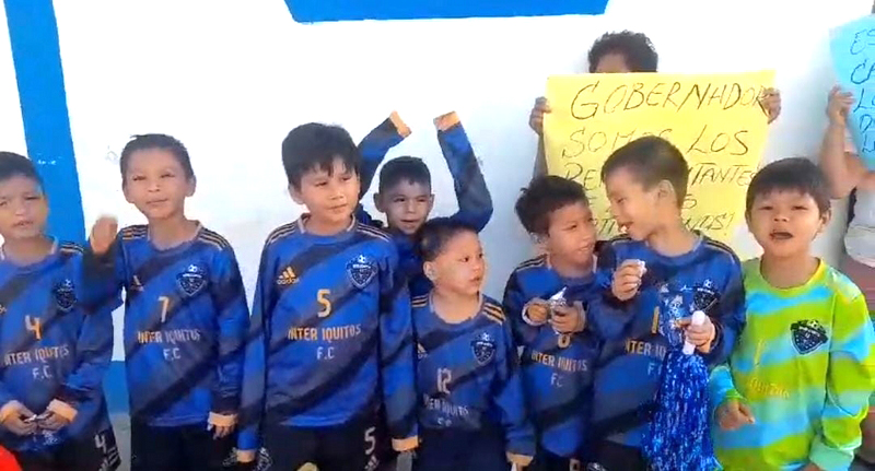 Padres y niños del equipo Inter Iquitos Fútbol Club acudieron al Gobierno Regional de Loreto con la esperanza de conversar personalmente con el gobernador René Chávez Silvano para solicitarle su apoyo solidario.
