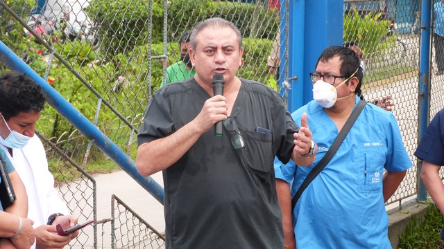 A las 8 de la mañana apareció en el frontis del hospital EsSalud, ubicado a un lado de la Av. La Marina, el Dr. Carlos Enrique Sánchez Araujo, presidente del Cuerpo Médico. Lo acompañaba un grupo de colegas, luego aparecieron licenciadas en enfermería y profesionales de la CUT.