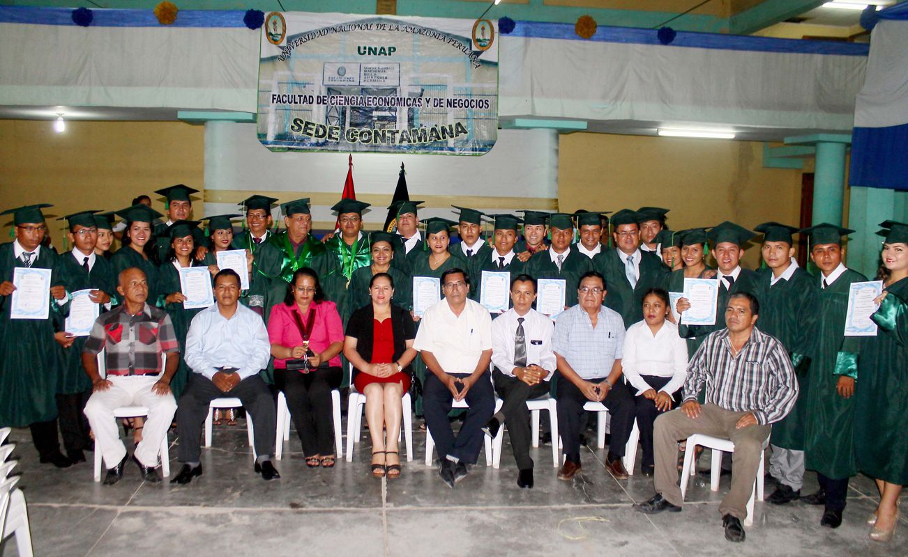 La Universidad Nacional de la Amazonía Peruana (UNAP) continúa formando nuevos profesionales en sus sedes al interior de la región, jóvenes muy bien preparados que ahora lideran las empresas públicas y privadas y contribuyen con el desarrollo de sus provincias y distritos; en este marco se graduaron en la sede Contamana, la noche del viernes 13 de mayo, 44 nuevos bachilleres, egresados de la Facultad de Ciencias Económicas y de Negocios (FACEN), escuelas profesionales de Contabilidad y Administración.