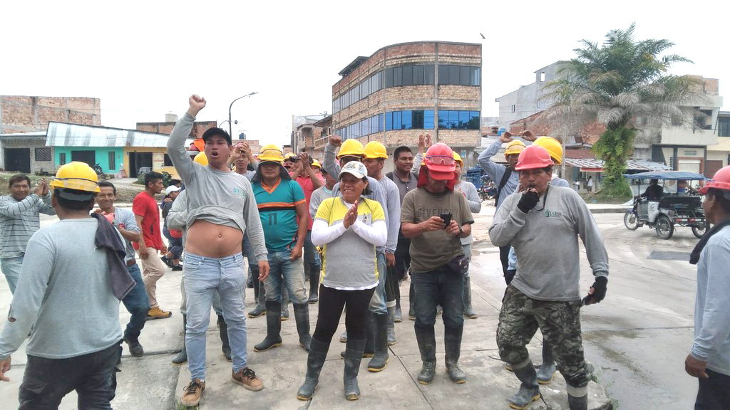 Los manifestantes explicaron que no recibieron el pago de sus remuneraciones correspondiente a un mes, por sus labores desarrolladas en la construcción de las rasantes de los asentamientos humanos Simón Bolívar, 15 de Marzo, Nuestra Señora de la Salud, Pilar Nores y Glenda Freitas.