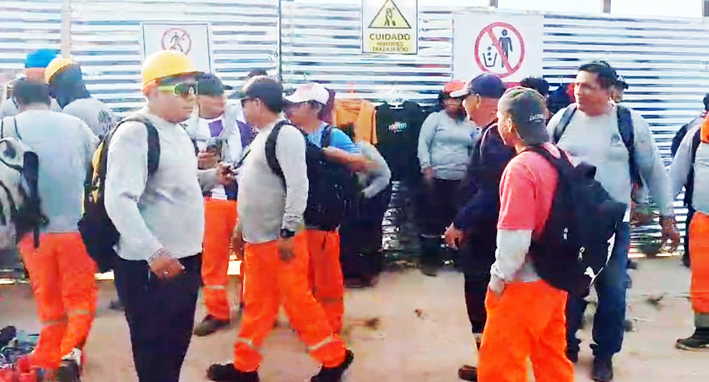 Ante esta situación, los obreros decidieron realizar un plantón y bloquear el ingreso principal a la obra, impidiendo la continuidad de los trabajos como medida de presión para exigir el respeto de sus derechos laborales.