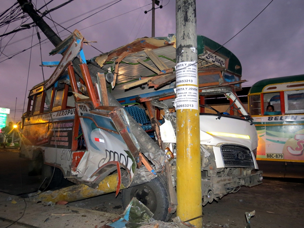 Se quedó dormido al volante. Teddy Sangama Yahuarcani (32) salvó de morir trágicamente luego que el ómnibus de placa de rodaje Nº B9E-729, perteneciente a la empresa de transporte público «San Juan» que conducía, colisionara contra un poste de alumbrado eléctrico en el cruce de la avenida La Marina con Trujillo, cerca de las 4 de la madrugada. La parte delantera del vehículo quedó completamente destrozado y no se descarta que el conductor haya estado manejando a excesiva velocidad, correteando con otro ómnibus. Al lugar del accidente llegó personal del serenazgo de Punchana quienes llevaron al herido de emergencia al hospital regional de Loreto, donde el médico de turno le diagnosticó contusión en la pierna derecha por descartar fractura. El colectivo ya había dejado sus pasajeros en Bellavista Nnanay y retornaba con dirección al Aeropuerto cuando se registró el lamentable accidente. Según algunos testigos, en el interior del ómnibus viajaban tres personas, entre ellos una pasajera que no sufrió rasguño alguno ya que estaba sentada en la parte posterior del colectivo. (C. Ampuero)