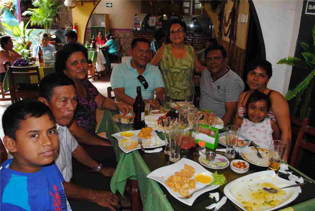 El 29 de Marzo estuvo de onomástico la dama loretana Teresa Angulo Ríos, por esta fecha tan especial sus jóvenes hijos Carlos, Manuel y Rocío le invitaron un riquísimo almuerzo en la Cevichería EL MIJANO.- En la panorámica la cumplida de pie junto a sus hijos y familiares.- HAPPY BIRTHDAY TO YOU PARA TERESITA.