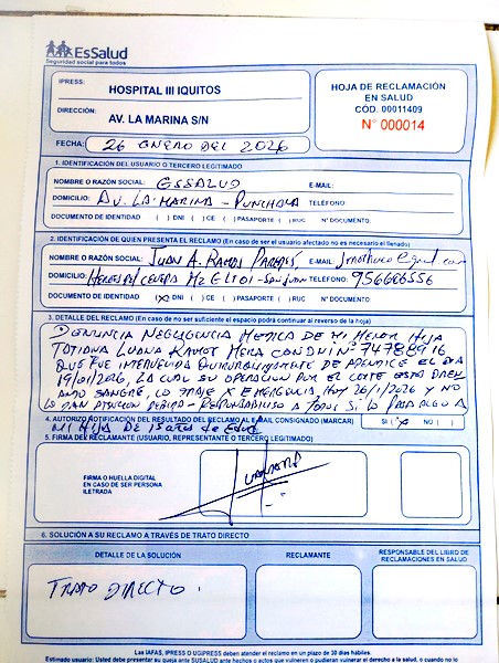 “A mí hija la operaron de apéndice el pasado lunes 19 de enero de 2026, pienso que la operaron mal porque amaneció con mucho dolor y drenando sangre. Ahora nuevamente me envían a que le saquen riesgo quirúrgico y ecografía. Es algo terrible que una vida tan joven, no pueda ser operada de manera profesional”, declaró Ramos.