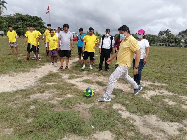 El equipo de trabajo de la Subgerencia de Promoción Cultural del Gobierno Regional, se trasladó hasta el lugar para participar, según la programación, del inicio del campeonato de futbol de varones. Esta actividad deportiva contó con la presencia del Administrador del IPD, Eloy Rengifo Crisóstomo, quien fue el encargado de dar el Play de honor en la apertura del campeonato deportivo, en compañía del Coordinador de la mencionada entidad, Remigio Reátegui Coiña y el Subgerente de Promoción Cultural Lic. Armando Almeida Nacimento.