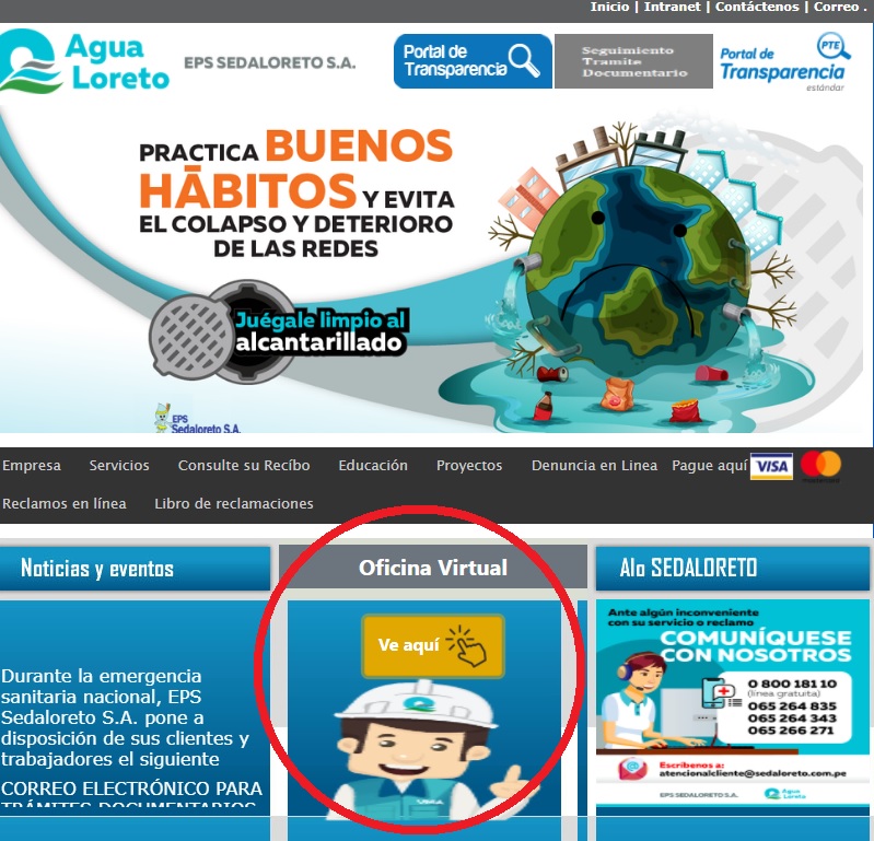 ingresando a la página www.sedaloreto.com.pe, digitas tu número de suministro y podrás realizar los siguientes tramites como son: falta de conexión, cita de atención online, historial de recibos, recibos pendientes, cálculo de facturación, denuncia de hurto, reporte de fugas, denuncia de corrupción, libro de reclamaciones, solicitud de reclamo, conexión nueva, limpieza de coorporatión, cambio de nombre del recibo, corte temporal, instalación de medidor, desatoro de colector o alcantarillado, alquiler de hidrojet, compra de tancadas de agua, fusión de predios y hasta pago de su recibo por consumo.