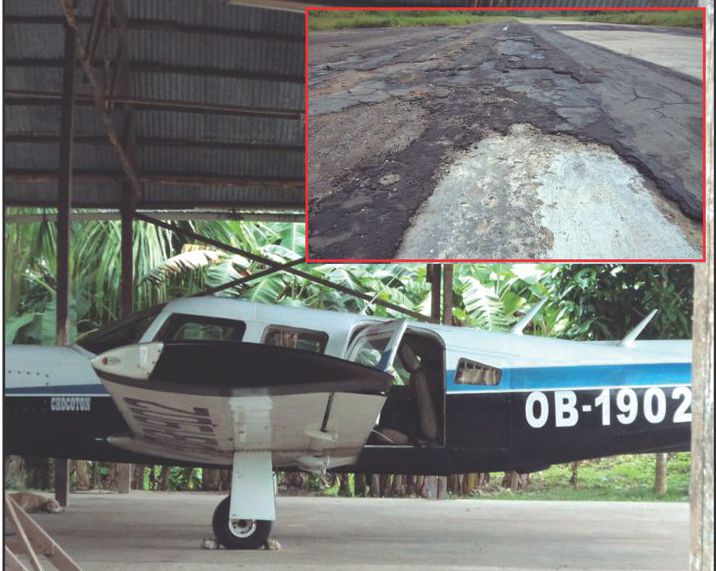 RODOLFO LOVO TELLO, corresponsal de Contamana.- La muerte rondó en Contamana, cuando eran aproximadamente las 9.00 de la mañana, la avioneta de matrícula OB-1902, procedente de Pucallpa con cinco pasajero abordo, en circunstancia que estaba aterrizando, la llanta delantera se introdujo en uno de los tantos huecos que tiene el aeródromo, doblando su soporte lo que le hizo aterrizar de pecho.