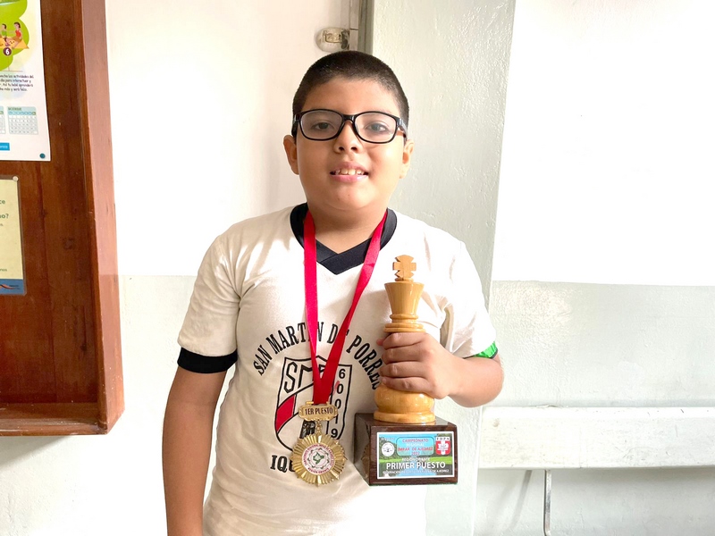 “Me gusta el ajedrez desde hace tiempo. En mi casa practicaba con mi tío y mi papá, y mi mamá siempre me ha apoyado. Estoy muy feliz por haber ganado”, comentó Mateo, quien cursa el tercer grado en el colegio San Martín de Porres.