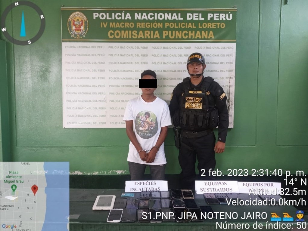 Ante esta situación el joven intervenido fue puesto a disposición del Área de Delitos y Faltas de la comisaría de Punchana en calidad de detenido, por encontrarse Inmerso en la Presunta Comisión del Delito Contra el Patrimonio – en la modalidad de Receptación de equipos celulares. (C. Ampuero)