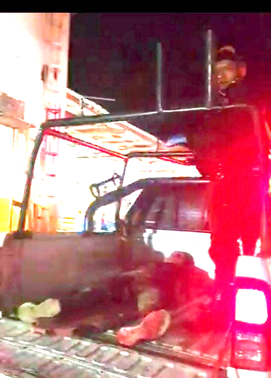 Pero en pleno trayecto, los efectivos policiales intervinientes se encontraron en la carretera Santo Tomás (a unos 300 metros pasando la Villa Olímpica), con un motokar color azul, en el cual venía a bordo el Suboficial de 3ra PNP Cristian Lachi Navarro, quien trasladaba en el vehículo en mención a la persona de Jerry Reátegui Lino, procediendo a estabilizar a la persona herida, colocándolo cuidadosamente la férula espinal larga (FEL), para su posterior traslado al Hospital Apoyo Iquitos “César Garayar García”, donde fue atendido por el médico de turno, Dr. Relto Ríos García, quien diagnosticó lo siguiente: Herida por proyectil de arma de fuego (PAF) a la altura del muslo izquierdo y derecho.