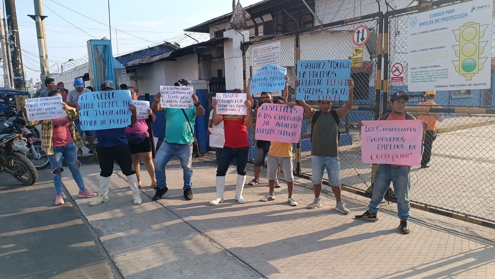 Un grupo de trabajadores dedicados a la comercialización de pescados, realizó una protesta en el frontis de una de las puertas del terminal portuario de Iquitos ENAPU, para exigir la devolución de su mercadería decomisada por parte de SANIPES y la ADUANAS.