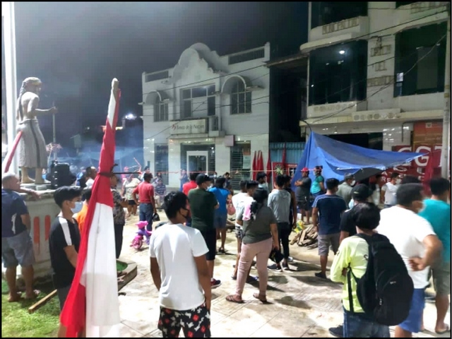 Población de San Lorenzo enardecida por el paro que tiene lugar desde ayer a las 00:00 horas en toda la provincia del Datem del Marañón, decidió tomar por la tarde el frontis de la Municipalidad Provincial a fin de evitar que cualquier funcionario municipal ingrese hasta no dar solución a las problemáticas en reclamo.