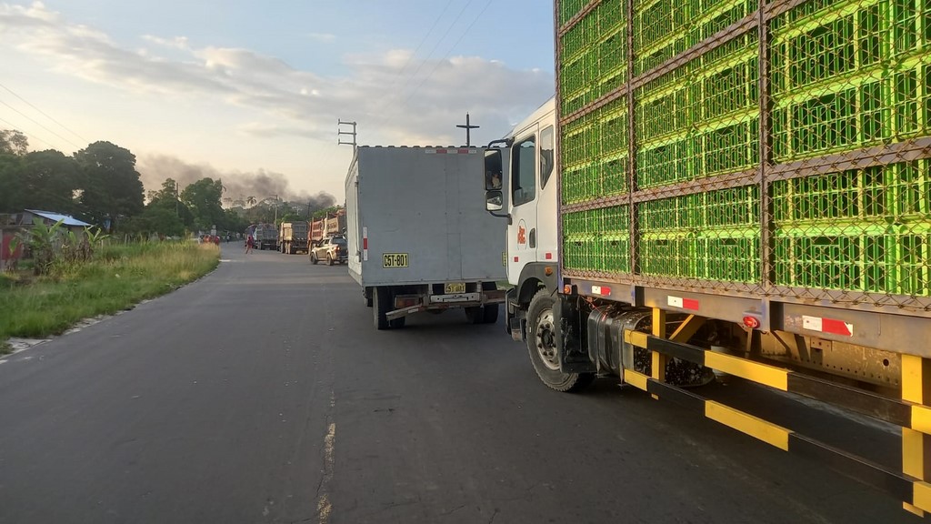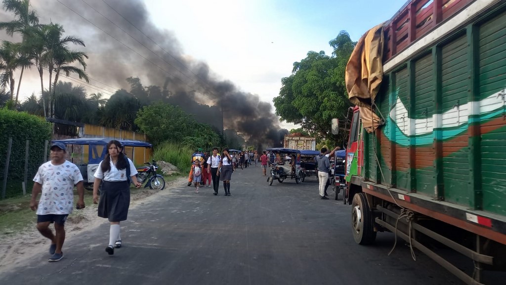 La carretera interprovincial Iquitos – Nauta, amaneció ayer miércoles 4 de octubre bloqueada a la altura del kilómetro 10, por una gran cantidad de manifestantes que impedía con quema de llantas y arengas el normal desplazamiento de vehículos a través de la autopista.